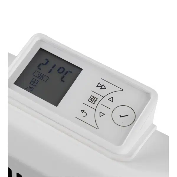 Met de wandconvectoren is het de elektronische thermostaat die energiezuinig verwarmen kinderspel maakt. De gebruiker kan het bijvoorbeeld voor elke dag van de week individueel programmeren om naar behoefte te verwarmen. Met de teruglooptimer kan de verwarmingsduur worden ingesteld (bijv. een uur). De ingebouwde sensor bewaakt op zijn beurt constant de kamertemperatuur, herkent wanneer een raam wordt geopend en schakelt zichzelf dienovereenkomstig uit. Als de temperatuur onder de 7°C daalt, wordt automatisch de vorstbeveiligingsfunctie ingeschakeld – volledig comfort, d.w.z. comfort zonder compromissen.